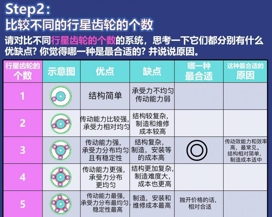 比较不同个数的行星齿轮系统的优缺点。(粘贴图片如下)