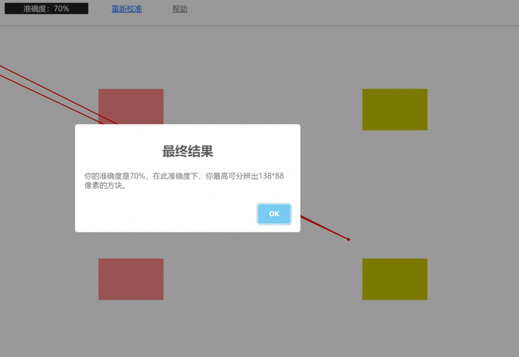 1.我完成了第7关的一半,最高可以分辨出(138*88)的方块。