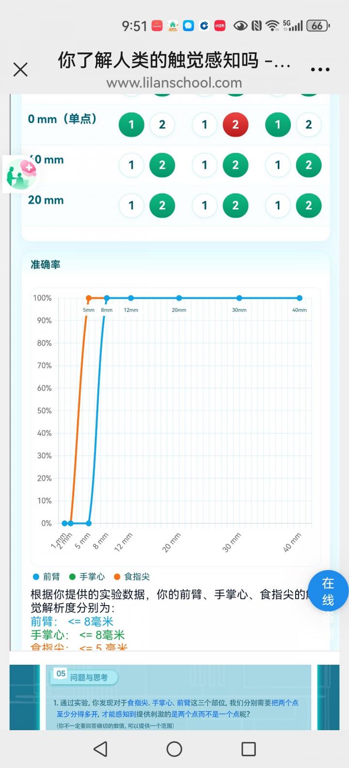 测量手臂、手心和指尖的触觉解析度