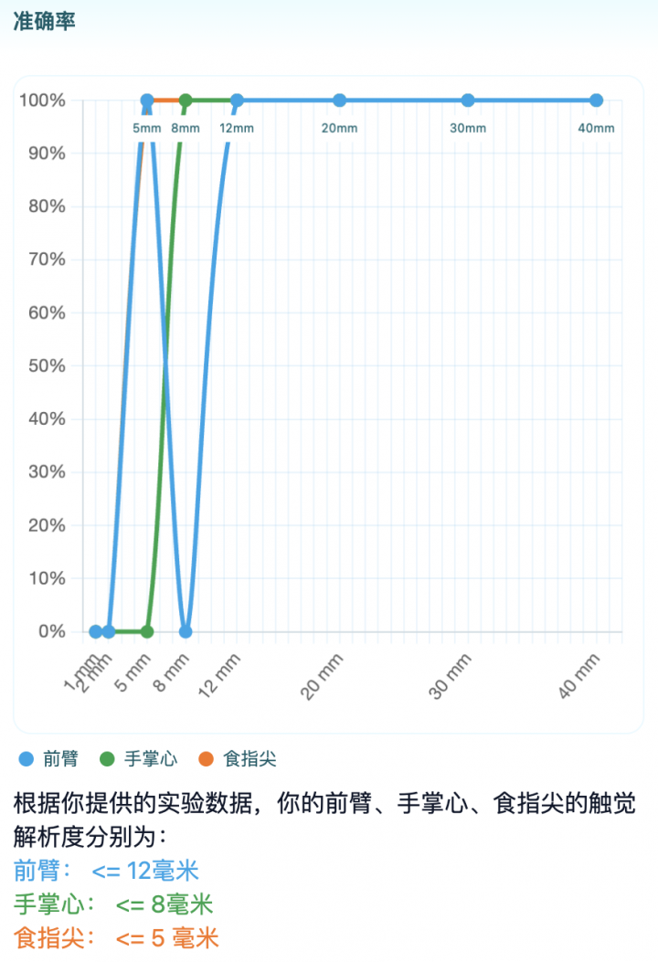 结果符合预测,因为生活中很多事情都是用手和手指的触觉完成的,如果精度不够高完成的事情也会不够好