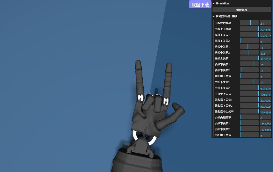 问题一:1 机器人手上共有20个电机。2 大拇指上共有5个电机,食指、中指、无名指共有3个电机,小指共有4个电机